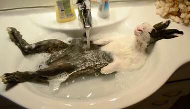 The easiest way to clean a rabbit is in the kitchen sink. Rabbits should not be given a bath unless absolutely necessary. Try a dry bath to clean your bunny if he is not accustomed to a wet bath. They reproduce quickly and grow to almost full maturity in a short six weeks. Spot baths only introduce water to the areas of the fur where it is needed.